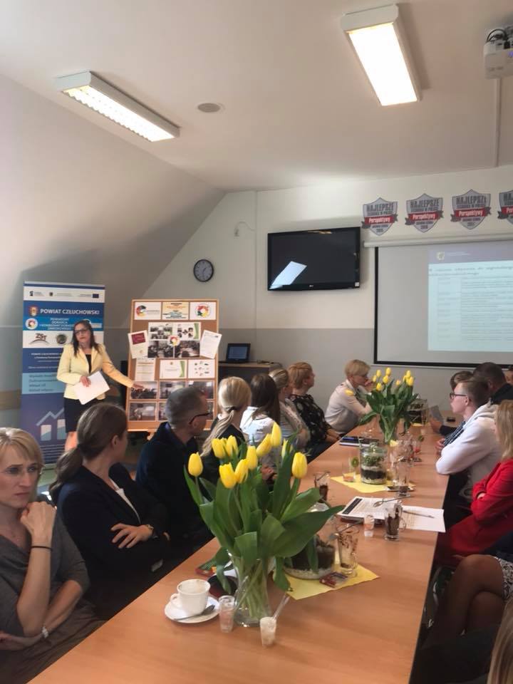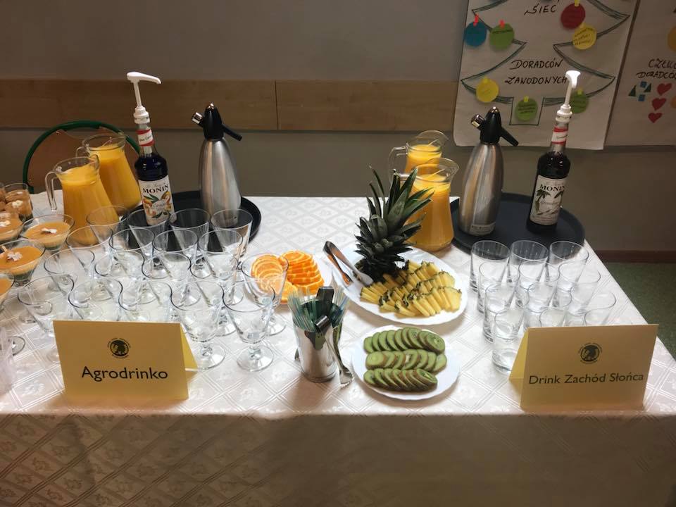 Podczas spotkania prezentowano działania podjęte w ramach realizacji założeń ujętych w projekcie. Omówiono kursy i staże w których uczestniczyli uczniowie ze szkół naszego powiatu oraz wsparcie z którego skorzystali nauczyciele przedmiotów zawodowych. Natomiast uczniowie technikum żywienia ZSA w Człuchowie prezentowali swoje umiejętności zdobyte na kursach realizowanych w ramach ww projektu z wykorzystaniem wyposażenia również zakupionego ze środków unijnych.